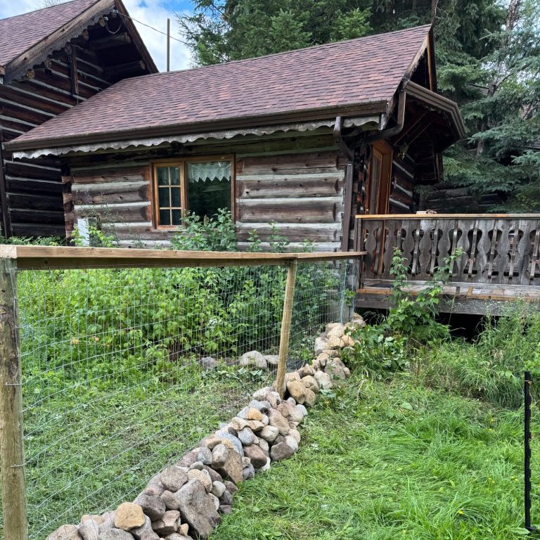 This cabin is located directly beside our goats’ summer pasture, offering a unique and authentic ranch atmosphere.